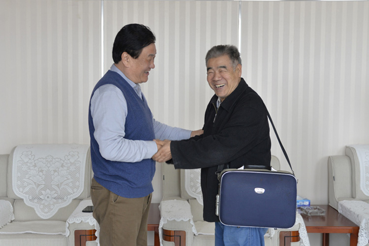 4月26日,臨淄區書法家協會文藝輕騎兵志愿服務小分隊走進山東美陵集團,到來的書畫家有區政協原主席、區書法家協會名譽主席于世君,區文聯主席王同國,區書法家協會副主席崔奉江,以及臨淄六名知名書畫家。董事局主席劉效華親切接待了書畫家們。