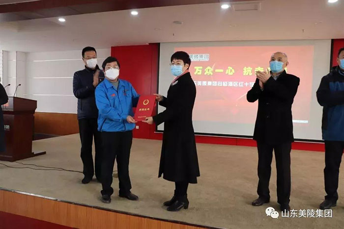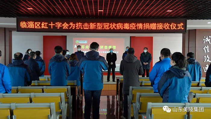 2月6日,山東美陵集團為抗擊新型冠狀病毒疫情捐贈儀式在公司五樓會議室舉行。山東美陵集團向臨淄區紅十字會捐贈100萬元用于防控新型冠狀病毒感染的肺炎疫情。