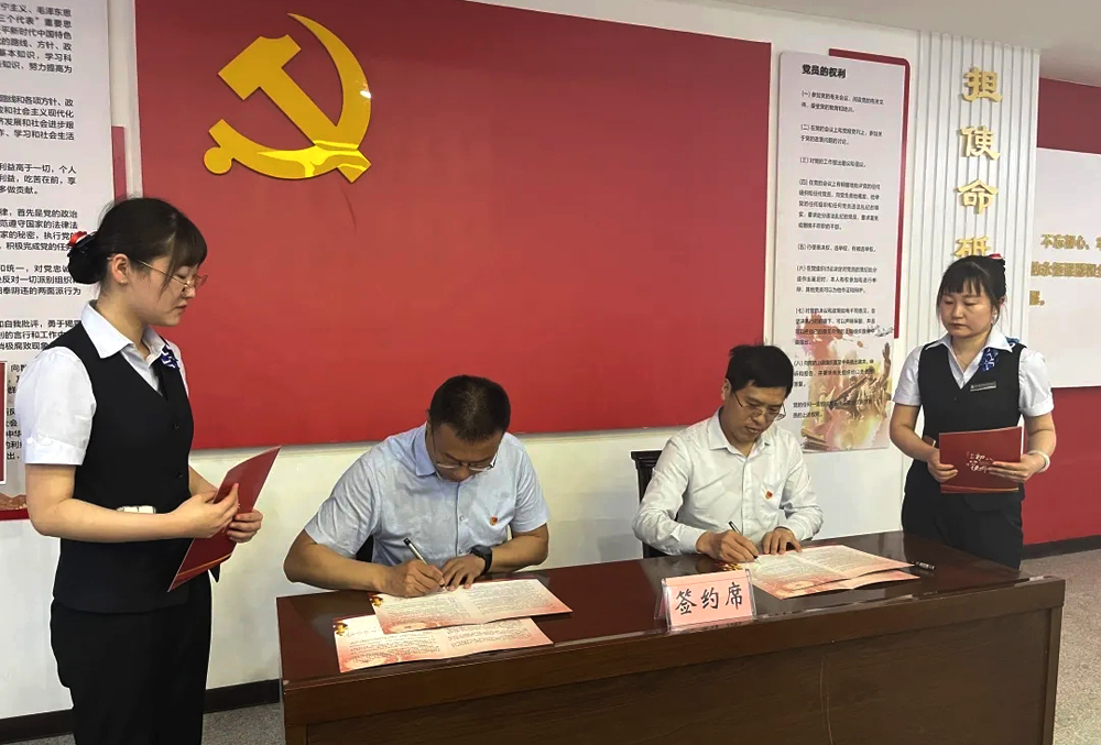 齊陵街道黨工委書記朱冰與臨淄農商銀行黨委書記玄俊峰簽署《黨建共建協議》《戰略合作協議》