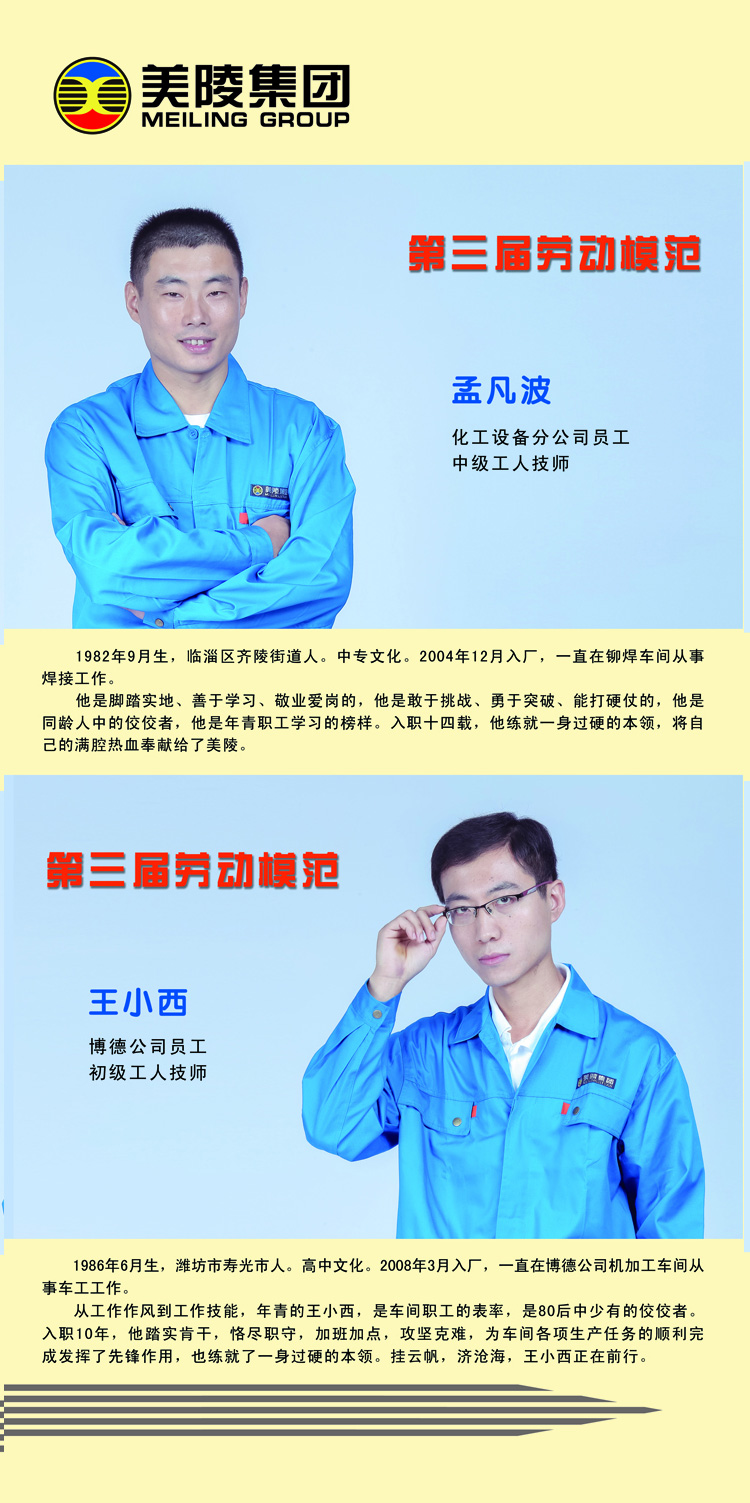 各個時期的勞動模范以勤勞和智慧,不僅為美陵創(chuàng)造了巨大的物質(zhì)財富,更為一代又一代的美陵人樹立了榜樣。也許,他們還不夠轟轟烈烈,只是勤勤懇懇,平平常常;也許,他們并沒有驚世駭俗,只是踏踏實實,默默奉獻(xiàn)。他們,展現(xiàn)了美陵人的風(fēng)采,他們,是美陵的脊梁!宣傳他們,是在宣傳一種精神,學(xué)習(xí)他們,是在發(fā)揮榜樣的力量。建設(shè)百年美陵,實現(xiàn)美陵人的夢想,我們還有很長的路要走,企業(yè)需要更多的勞模,需要我們大力弘揚愛崗敬業(yè)、爭創(chuàng)一流、艱苦奮斗、勇于創(chuàng)新、淡泊名利、甘于奉獻(xiàn)的勞模精神,需要讓勞模精神成為企業(yè)思想文化建設(shè)的精神高地,成為開展職工思想教育工作的生動教材,成為鼓舞和引領(lǐng)員工投身百年美陵偉大事業(yè)的精神動力。