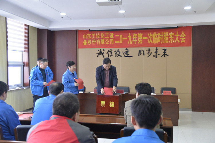 山東美陵化工設備股份有限公司2019年第一次臨時股東大會于2019年2月11日上午在公司三樓會議室召開。與會股東共57人,代表14432757股,占股份總數的24.1%。